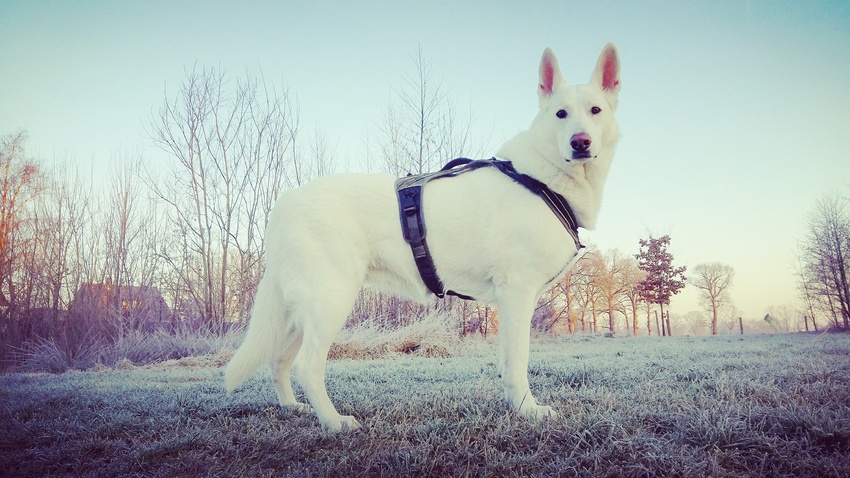 Wat was het fris vanochtend. Shadow vind het heerlijk. Ik ook wel zo. Lekker droog en de zon erbij.
