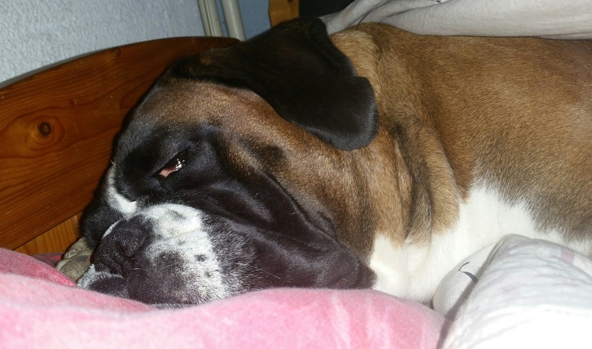 Ik dacht dat ze een leuke droom had en daarom kwispelde, totdat ik een soort van boerenkool rook onder de dekens.