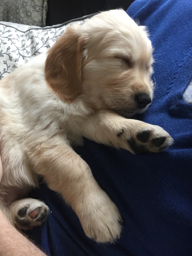 ) Lag hij zo heerlijk bij mij te slapen, hij wilde nog niet in zijn mand oid alleen liggen. Nouja prima ![]()