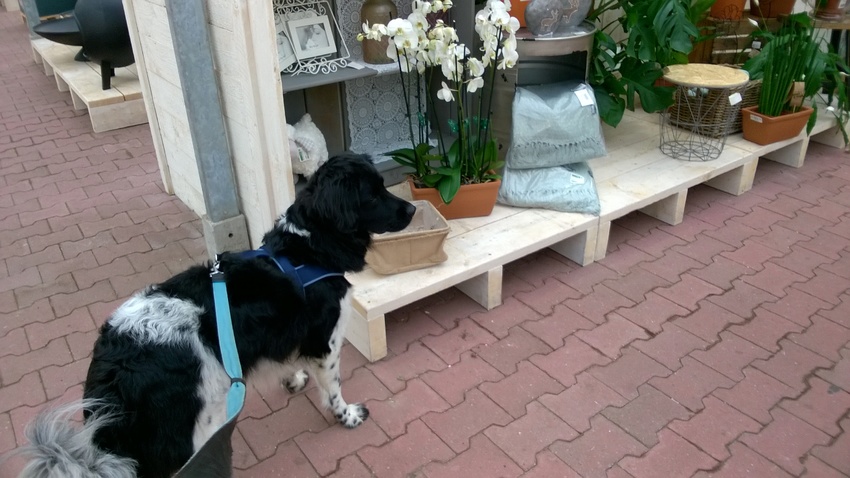 "Ooooooke vrouwtje... ik zal mijn zelf-mee-naar-huis-gesleepte-boomstam in de schuur laten.... maar dan wil ik wel zo'n snoepje uit je jaszak"