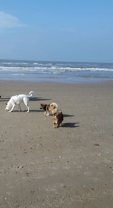 Vanmorgen even met 3 honden naar t strand geweest. Paddy wil ik nu niet los, dus t was wat onhandig.