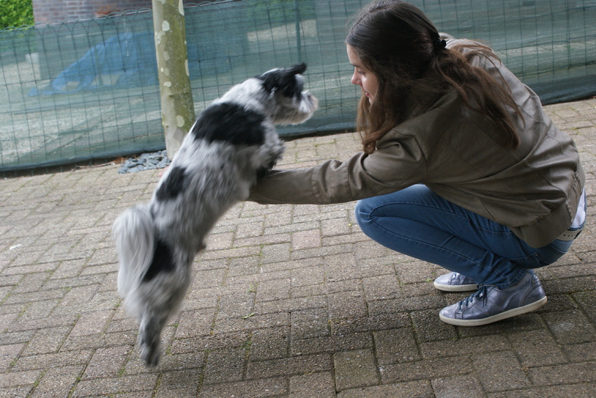 Af; als ze tegen me op springt of vervelend doet.