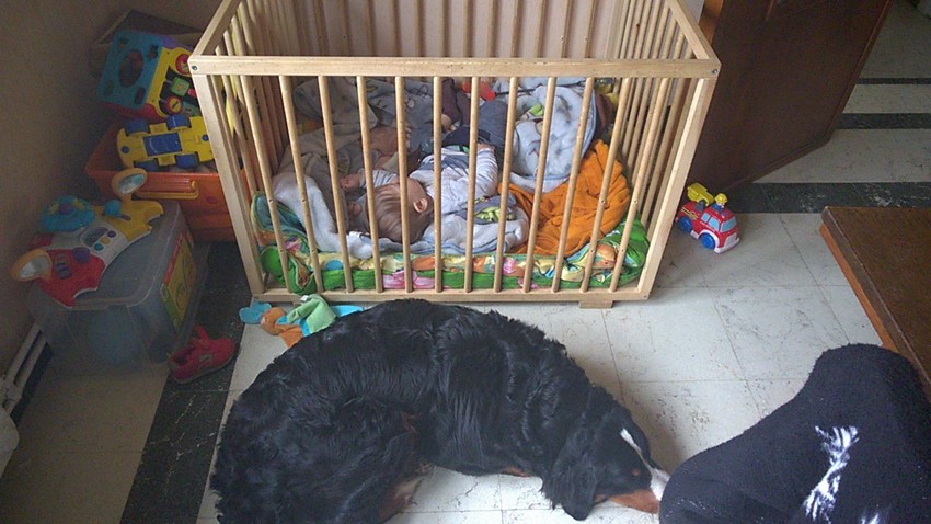 .... als de kleine groter wordt heb je grote kans dar Sadie en de kleine maatjes zijn door dik en dun, en een beschermende houding aanneemt... nu toch ook al....er bij gaan liggen als de kleine slaapt.