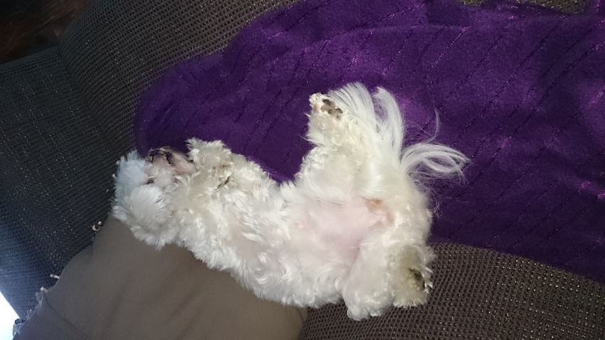 Zo ligt ze niet vaak. Puck was nu echt aan het chillen hihi. Komt vast omdat ze gisteren naar de behendigheidsles is geweest. De dag erna slaapt ze veel. We doen dan ook niet heel veel extra's.