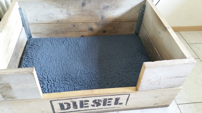 Deze hebben we ooit voor Diesel gemaakt, diepte is 90cm, maar die lange slungel poten kunnen niet gestrekt, daar hebben we ons in vergist. Maar verder ligt hij er altijd in!