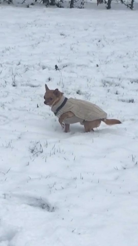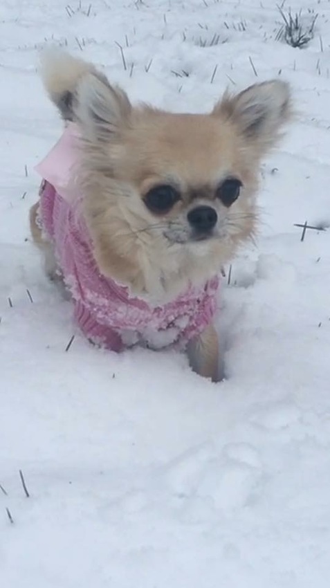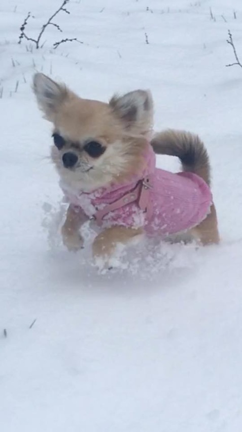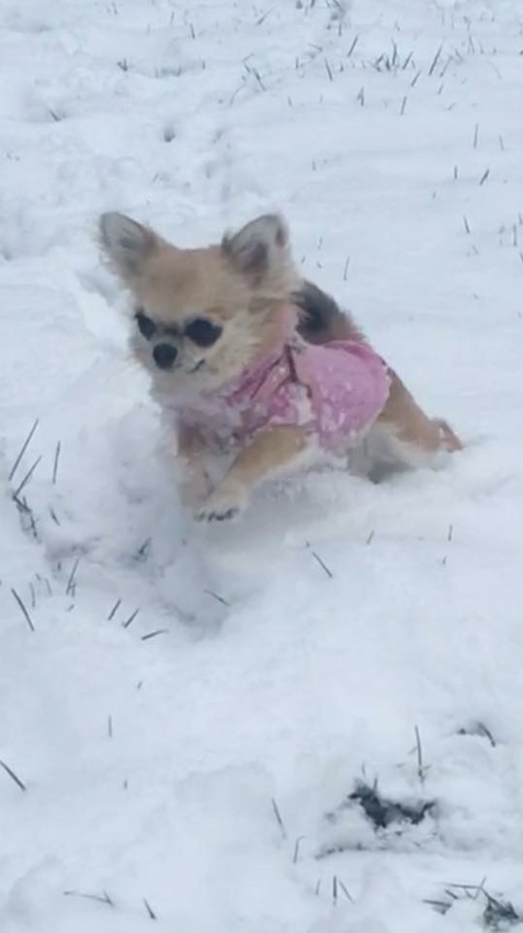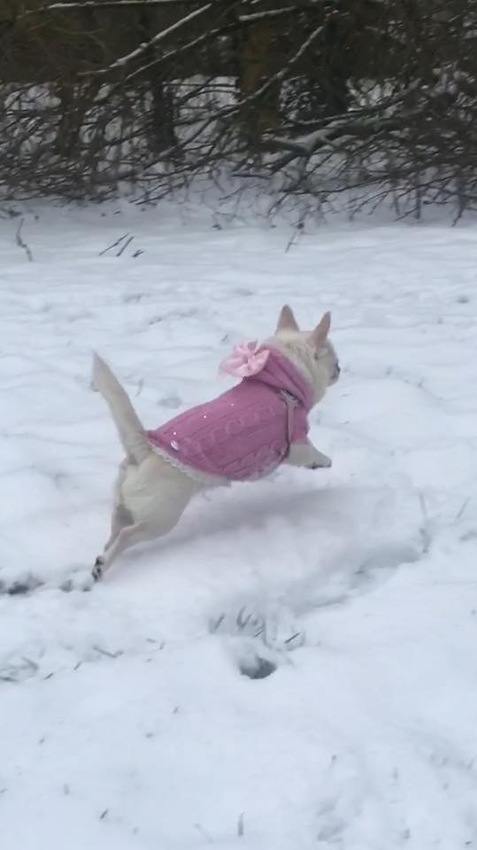 jaa de meisjes vonden het geweldig om te ravotten door de sneeuw! Kon niet te lang, want zoals je zag stond Amy tot met haar buik in de sneeuw, dus die koelde al snel af en dan bibberde ze enorm. Spikey vond er niks aan en wilde het liefsr weer naar huis, bleef ook gewoon staan.