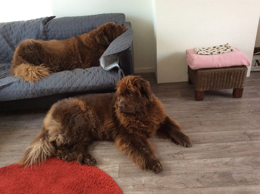 Mijn hondjes mogen van mij op de bank liggen (pup Lotus nu nog niet ik ben bang dat ze er af valt) ik heb een plaid op de bank liggen die ik iedere week vervang en was. Ik heb nu een stoffen bank, in het verleden had ik een leren bank waar mijn bordeauxdog Gipsy erg graag op ging liggen. Helaas gleden de plaids hier steeds vanaf waarop ik Gipsy ben gaan leren dat ze niet meer op de bank mocht liggen. Ze luisterde prima en ging niet meer op de bank, zolang ik in het zicht was. Maar owee als ik de kamer even uit ging of als ik s'morgens beneden kwam, dan hoorde ik Gipsy van de bank gaan en op haar eigen kussen gaan liggen.