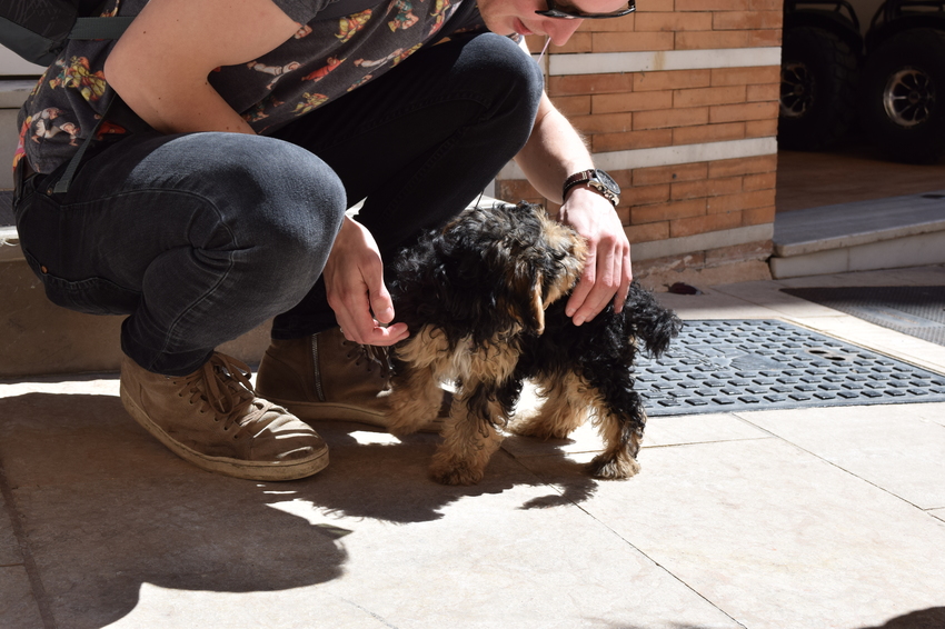 Dit was in Malaga, naast het appartement waar ik een weekje verbleef. Ik liep dus regelmatig langs het winkeltje en raakte in gesprek met de eigenaar en kon af en toe lekker met het hondje spelen.
