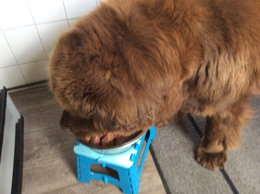 De rollen is niet aan te raden voor altijd, want dan moet ik een baan erbij gaan zoeken, de hoeveelheid die Bams moet krijgen is........25 kg 750 gram.....Bams weegt 75 kilo, dan zou ze drie x 750 gram moeten eten, tja dat is te gek in prijs natuurlijk....voor even okee, ze doet het er goed op, ze krijgt smorgens een rol van 900 gram, en savonds een van 900 gram, maar morgen is het weer even over en gaat ze weer heel normaal op haar eigen eten..... het is voor een keer ook heel makkelijk.