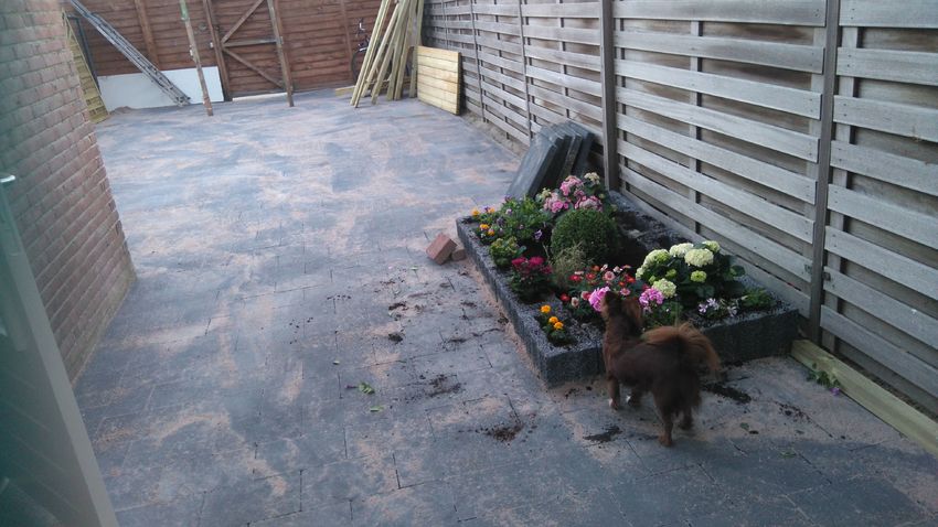 De tuin is vandaag herbestraat door tuinmannen. Maar foto's van de nieuwe tuin heeft geen zin bij het bewijs, toch? Want zo zag het er niet uit toen Betty ging zeuren erover, ook al had ze het nooit gezien...