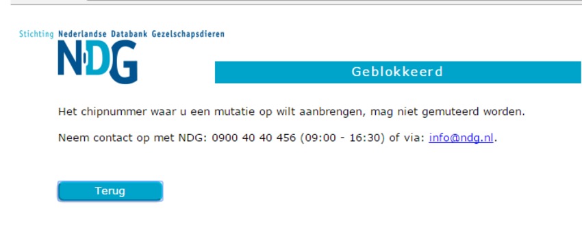 Ik had m'n hond als vermist opgegeven bij die ene site die werd genoemd. Ik probeerde het net ook te doen via NDG, maar dan krijg ik deze screenshot te zien. Komt dat omdat ik had ingesteld dat niemand de status van de hond mag wijzigen behalve ik of zo?