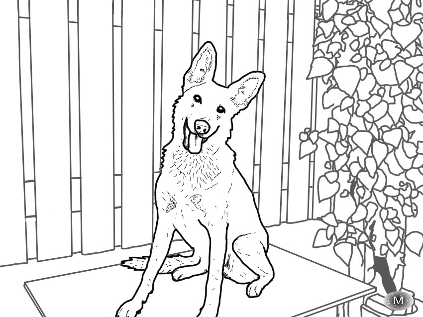 Leuk die achtergrond klopt echt precies bij de teken stijl van de hond