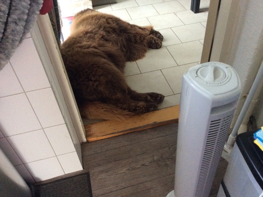 Ik ga mijn luchtbed opblazen, slaap bij de honden, ze mogen buiten, de deur staat op de haak, daar kunnen ze door..martin slaap lekker.![]()