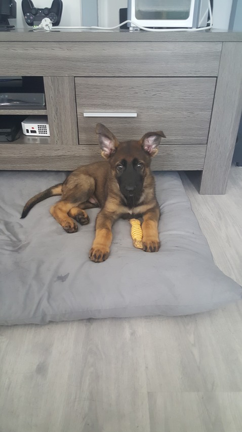 Wolf doet het best goed. Vannacht liep ie plots rond war ik niet door had, naar buiten voor een poepie. Wel in huis geplast, was dus iets te laat. Verder goed geslapen. Door miscommunicatie moest ie 3 uur lang alleen blijven vandaag, ons werk overlapte. Wij beide stevig balen. Maar op een plasje na is het goed gegaan. Hij was stil en niks gesloopt. Toch geen gewoonte ervan maken.