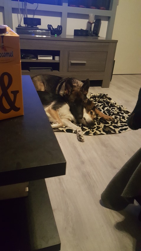 Alleen thuis blijven in de bench gaat steeds beter. Hij blaft alleen nog als je binnen komt. We hebben een nieuwe krabpaal waar ie (tot nu toe) vanaf is gebleven. Hij is óntzettend waaks geworden. Als ie het niet vertrouwd laat ie het duidelijk weten. (Zoals als mn vriend 's nachts thuis komt) Alle tanden zijn eruit en zn gebit nagekeken, super mooie (en grote haha) tanden heeft ie. Prachtig gebit, kregen een groot compliment. Hij woog afgelopen zaterdag 27,2 kilo en torent boven Joy uit. Ontlasting is ook helemaal goed, eetlust is altijd goed geweest, is een bootwerker hahaha.