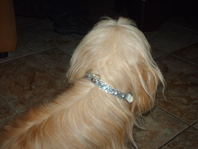 Luna en Turbo kregen beide een halsbandje alleen Turbo krijgt hem niet om.