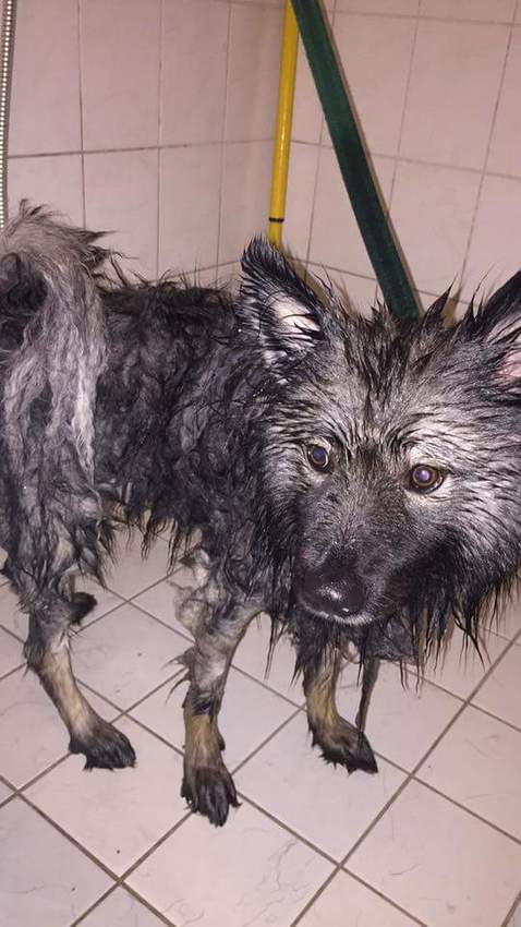 De honden worden alleen gewassen als ze hebben liggen rollen in iets smerigs of hebben gezwommen in stinkwater. Momo is zeker 4 jaar niet gewassen, Elsa gisteren voor het eerst.