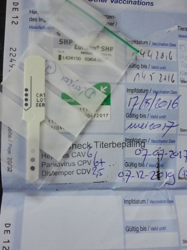 Zij heeft alleen de pup entingen gehad en hoeft volgens haar pas weer over 2,5 jaar opnieuw getiterd te worden.