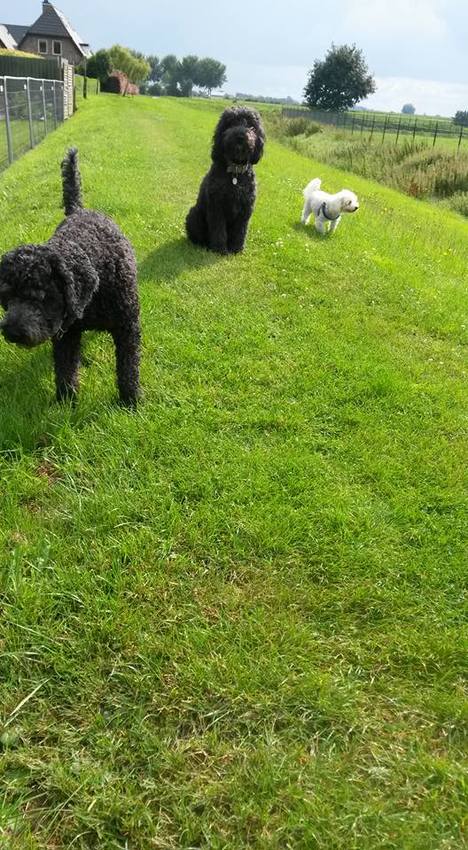Freggle kan dan ook mee, en hij loopt dapper mee met de grote honden! ![]()
