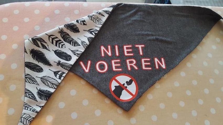 Aangezien Kaylo pancreatitis heeft en dus alleen maar zijn eigen voer mag eten ben ik opzoek naar een bandana met ''niet voeren'' en/of ''do not feed'' erop. In het mooiste geval staat het er in het Nederlands en Engels op.