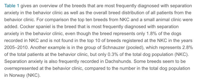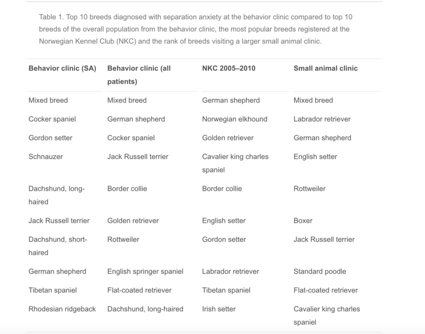 Het is wat mij betreft algemeen bekende informatie, het zijn honden die zich zeer sterk aan de eigenaar hechten en vaker dan gemiddeld problemen hebben met alleen zijn. Onder andere in dit Noorse onderzoek (uit 2014) komt ook duidelijk naar voren dat cockers hier vaker dan gemiddeld mee te maken krijgen: onderzoek Storengen et al., 2014
