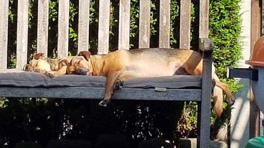 Heb wel de deur naar de veranda open en de veranda zelf ook open en de poort open. T waait er dan lekker door.