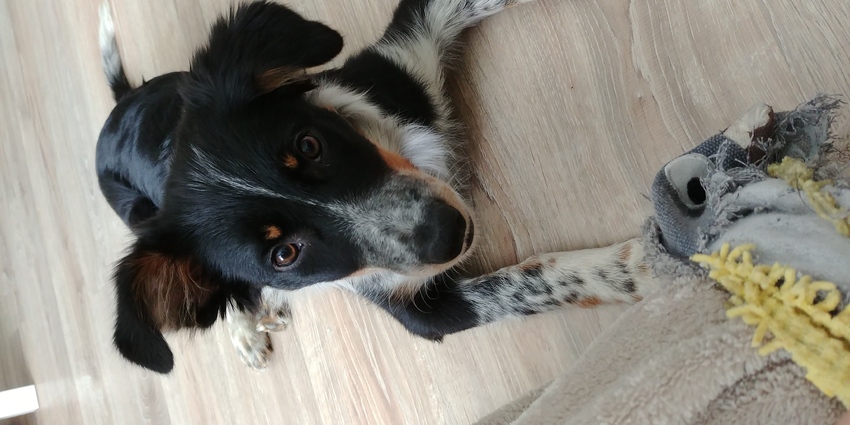 Hallo, ik heb sinds woensdag een nieuwe border collie pup nadat de andere pup (mijn eerste hond) op een leeftijd van 9 weken is overleden. Die eerste pup leek heel gewoon op een border maar deze nieuwe ook van dezelfde eigenaar heeft het hoofdje van een rottweiler.. ik hou van rottweilers dus ik vind het niet erg maar toch blijft het een beetje apart. Ik vroeg me af wat jullie ervan vinden? Want ik heb het met meerdere mensen besproken en zij vinden ook dat Hij de kleuren, patronen en hoofdstructuur van een Rottie heeft. De vorige pup had zwart witte kleur met zwarte stipjes en lange snoet, de nieuwe black and tan met blonde stippen en witte plekjes Rottie hoofd. Mischien ooit een dna test maar ik vroeg me af wat jullie mening is?