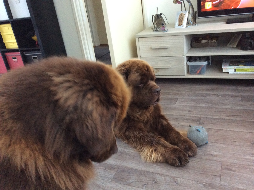 Dikke vriendjes met Kaylo, hij speelt ook zo lief met hem! Heel voorzichtig en gaat er altijd bij liggen.
