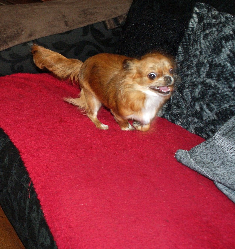 Hij heeft niet eens aan gestaan, gewoon daar gelegen. Java ligt achter de tafel, of als de deur van de gang open gaat, gaat ze bij de voordeur zitten. Als ik haar dan de kamer weer in stuur is ze super bang ![]()