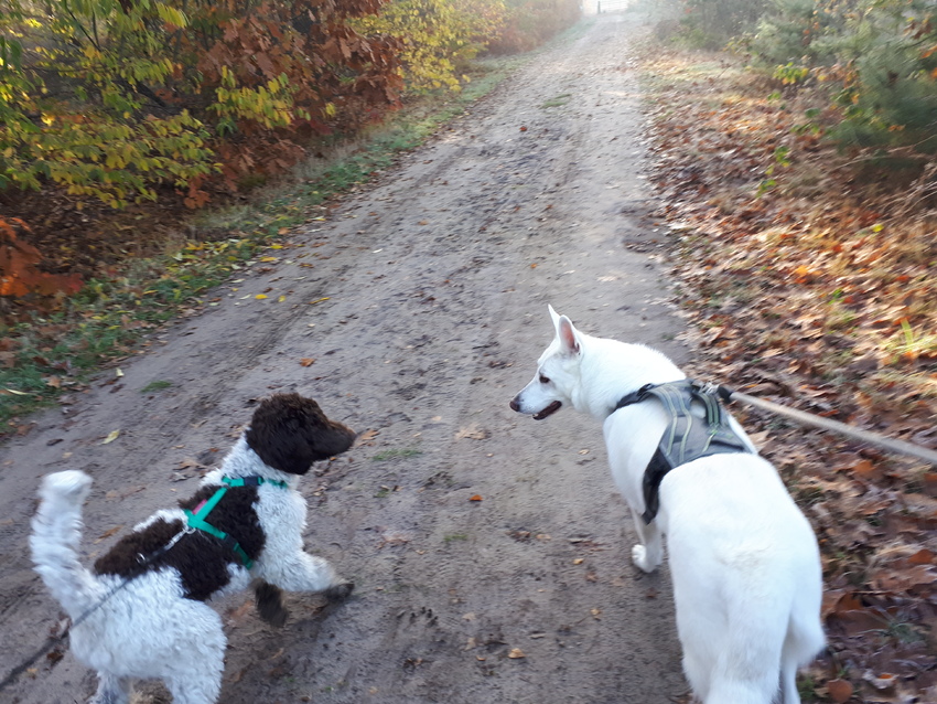 Ik heb een Hollandse herder kruising, aan de riem is ze stabiel en sociaal, los kan ze in het begin nogal druk doen, maar over het algemeen is ze rustig naar andere honden toe, zeker tijdens aangelijne wandelingen negeert ze andere honden, en doet lekker aan eigen ding, misschien fijn voor je hondje dat andere honden geen aandacht aan hen besteden.