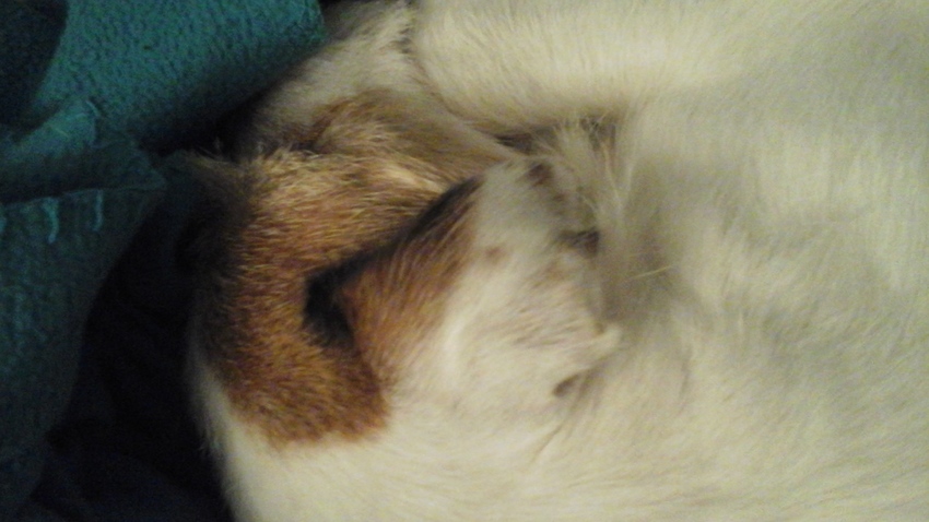 Romeo totaal ontspannen op zondagmorgen, terwijl de Relaxopet aanstaat. De foto is gedraaid, maar mijn ventje ligt gewoon op de bank. Hij heeft net zijn eitje op en ligt heerlijk te slapen. Het begin is gemaakt.