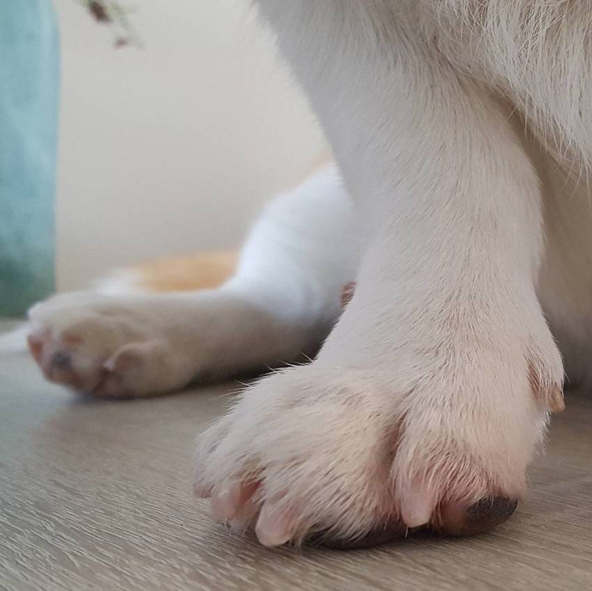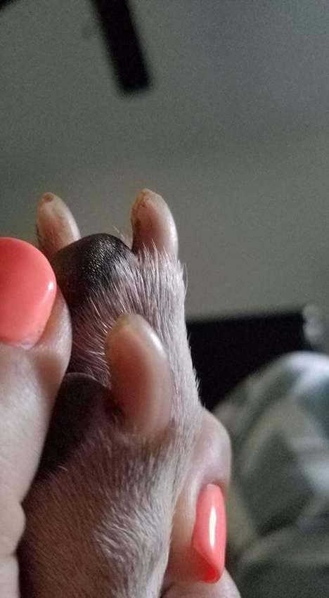 Deze foto is van de groep waar je het leven wat beter ziet. Bij die nagels moet het bovenkantje, het puntje er nog af zegmaar. Deze hond is 2 dagen niet gevijlt.