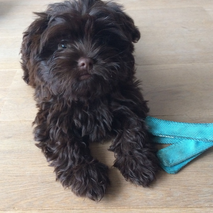 Java met 6 weken oud, toen we eindelijk wisten welke van ons zou worden. Ik heb wel foto's van toen de pups jonger waren maar Java staat daar helaas niet op..