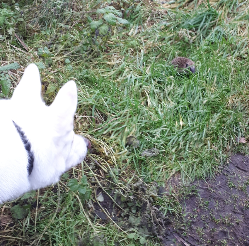 Tweede grote ronden gelopen net. En we komen een egel tegen. Shadow bleef allemaal staan en kijken naar iets. Ze liep los en denk waarom blijft ze nou staan. Ik terug gelopen om te kijken. Wat lief een egel midden in de winter. Dacht dat die altijd een winterslaap houden. Shadow is maar een schijterd. Wel nieuwsgierig kijken maar zodra het begon te lopen ging ze toch maar weg.