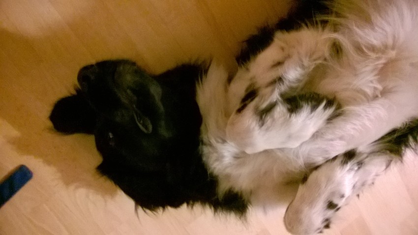 Dit was gisteravond.. moet altijd eerst even buikje kriebel doen voordat hij naar buiten wil ![]()