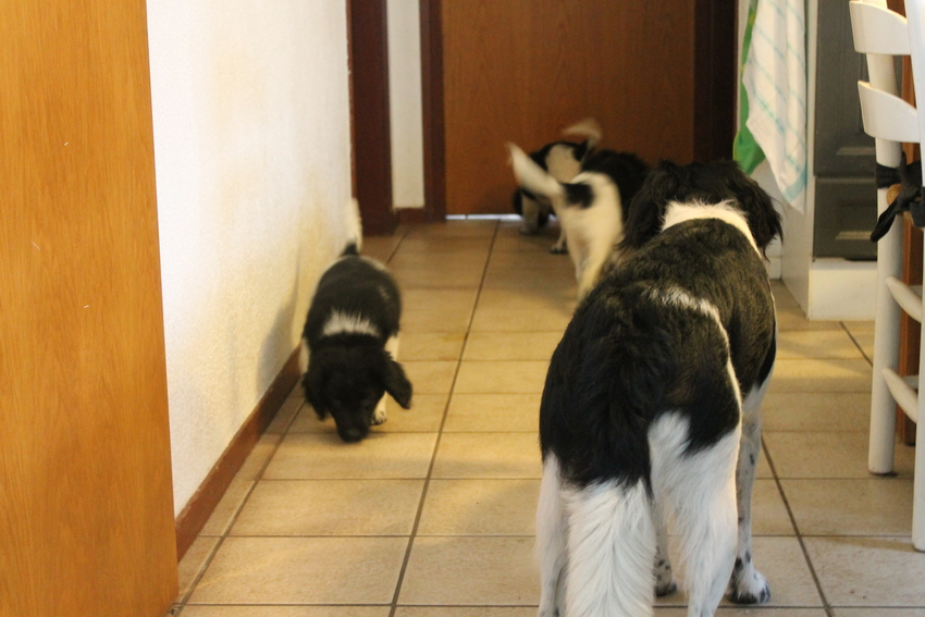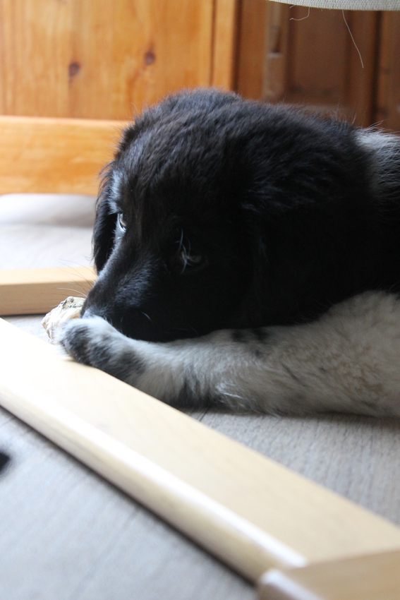 Dit is de eerste foto die ik van Balou heb gemaakt. Hij is hier negen weken oud en echt niet onder de indruk van reus Mowgli.