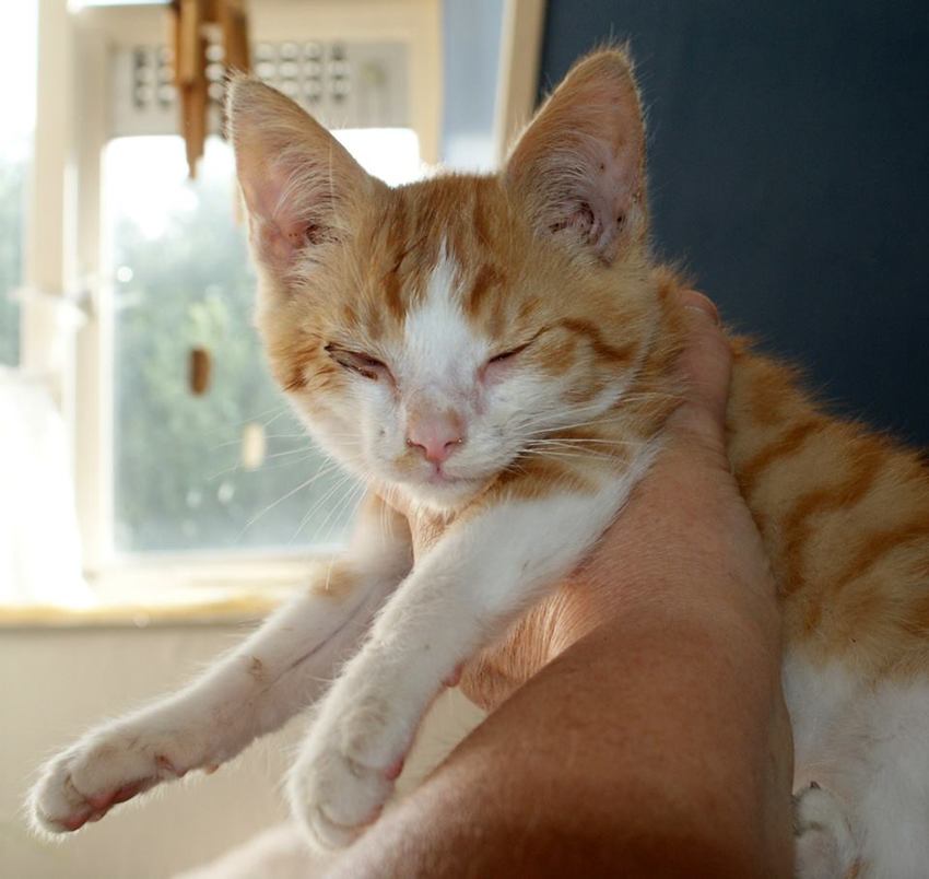 En dan moet kitten Nemo er ook maar bij de honden en hij zijn echt een drie-eenheid. Ik zag hem en zal en moest hem hebben ook al was Mowgli een kattenjager. Gelukkig is het helemaal goed gegaan tussen de honden en kitten Nemo zo goed dat er later nog een maatje voor Nemo is bij gekomen. Dit was Lucky een doodziek boerderijkitten, voor de dierenartskosten die ik voor hem heb uitgegeven had ik een raskat kunnen kopen. De half wilde Lucky en ik hebben een sterke band gekregen maar toch bleef de vrijheid lonken. Begin dit jaar heb ik Lucky naar mijn dochter herplaatst, daar kan hij veilig los er komt alleen eigen volk op het terrein. Lucky is inmiddels helemaal gewent en gaat en staat waar hij wil, hij is daar helemaal op zijn plek.
