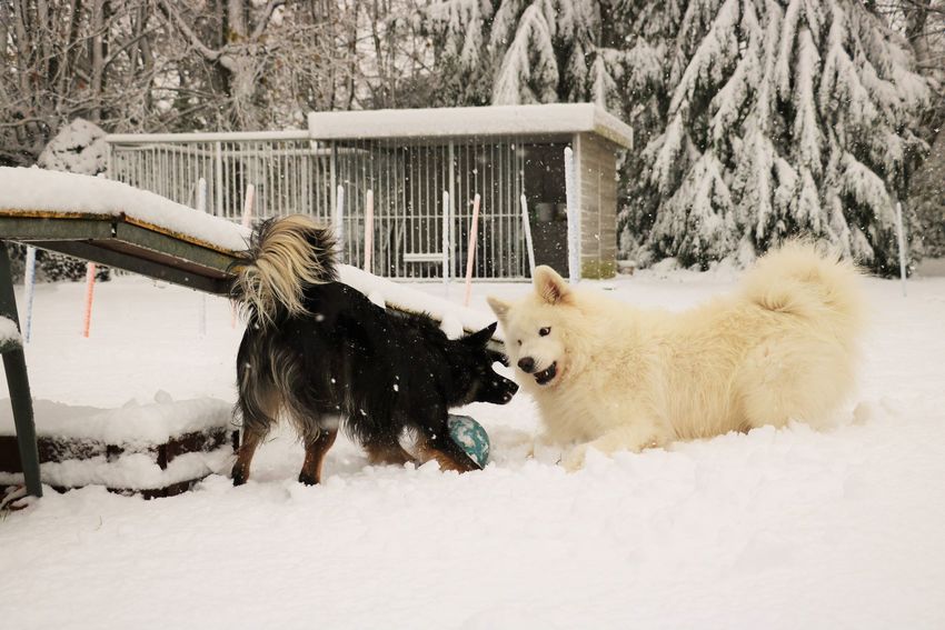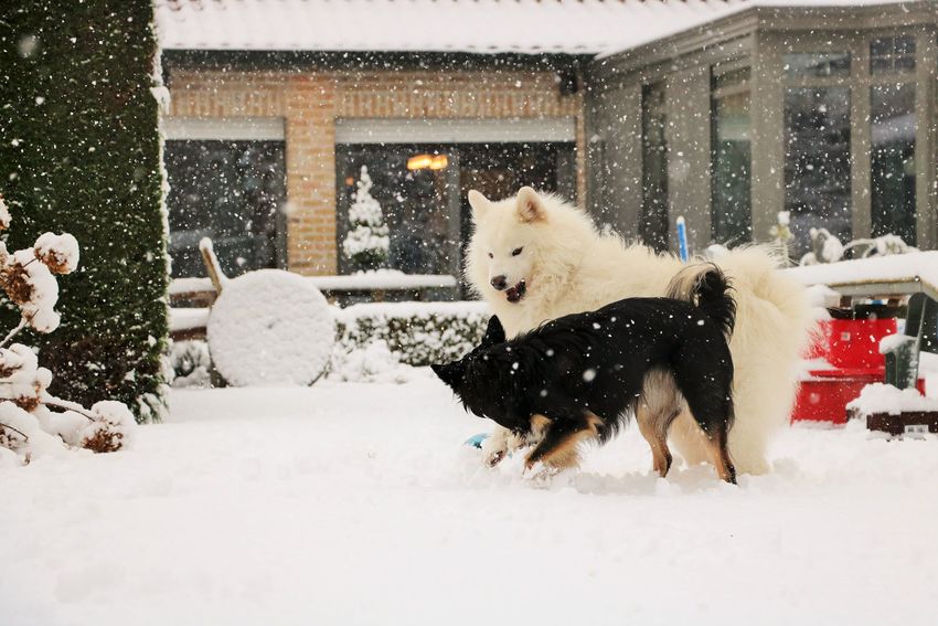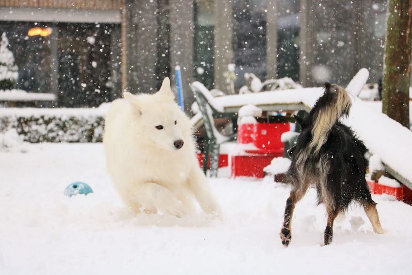 Volgens mij heeft Mikai nog nooit zo veel sneeuw meegemaakt.