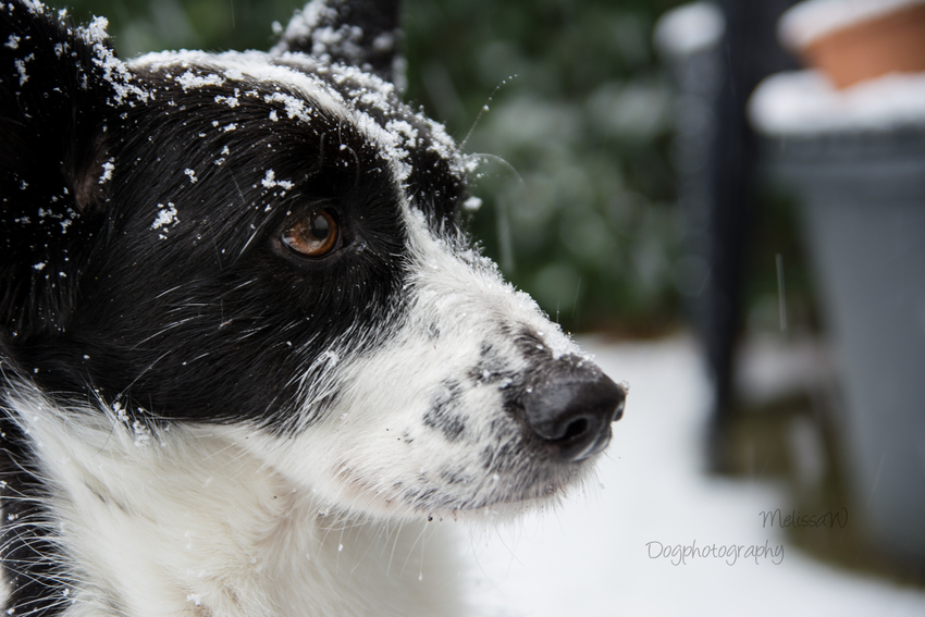 Penny kijkt op sommige foto's wat boos, maar ze vond de sneeuw helemaal geweldig. Ze heeft tijdens wandelingen alleen maar gerend en gek gedaan.