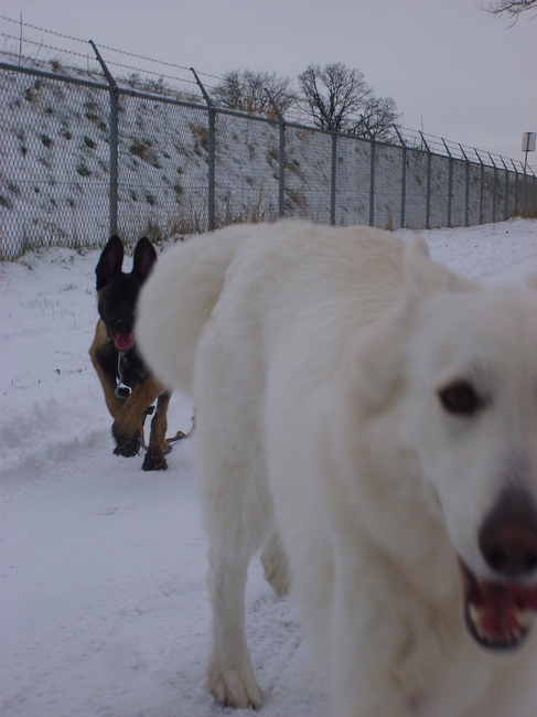 net terug van lopen..loopt een heel klein teckeltje altijd stoer met zn vrouwtje..erra was los,..ik doe dan vaak vast,,omdat ik bang ben dat kleine hondjes wat krijgenm,zijn zo teer..maar laat maar zwei ze..(haddeb elkaar al vaker gezien) hahha teckel komt net boven sneeuw uit,,rolde erin,,erra mee rollen...hahha super..geen foto,s..mn batterij was op grrrr