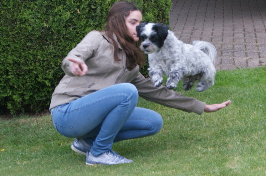 Hahaha ja! Ziva is verder niet zo erg gericht op eten, maar ons oudere jack russeltje blijft net zo lang blaffen totdat ze een snoepje krijgt..