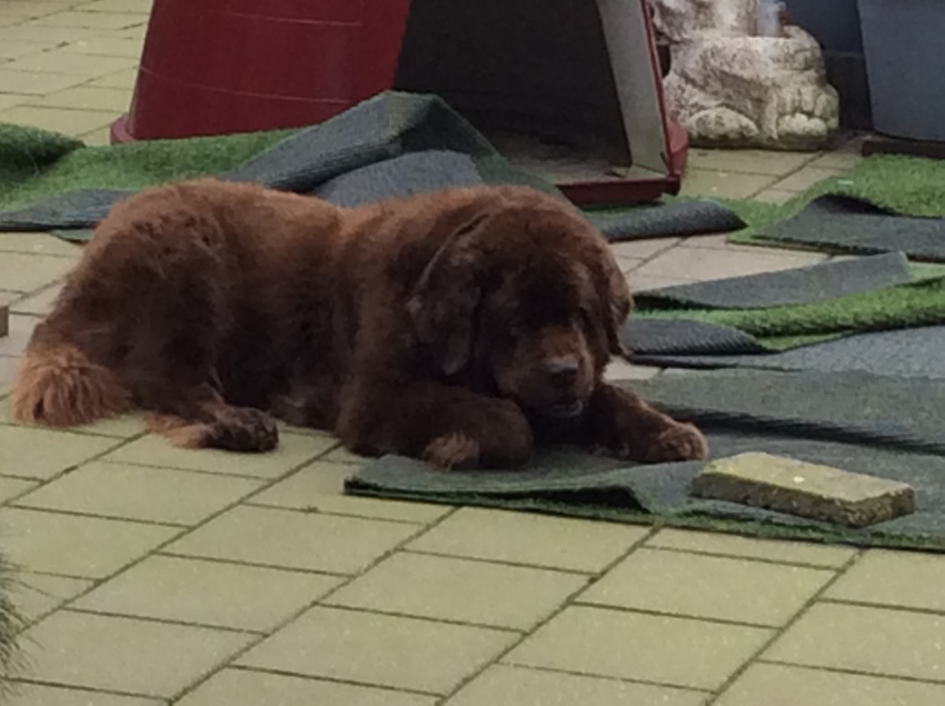 Nee, heb ik al jaren, zijn buitenkleden voor buiten, in de winter gaat het naar boven, heb er een naar beneden gehaald, warm voor Bams en ze kan dan beter opstaan, als het vuil is, makkelijk schoon te maken, hoge drukspuit...