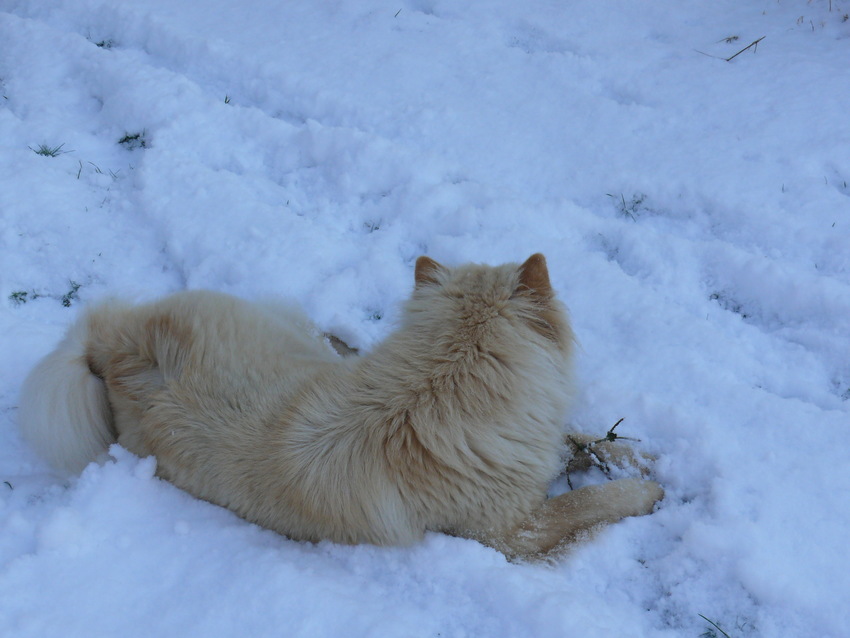 onze hond ligt al enkele uren buiten in de sneeuw te razen, als ik een foto kon invoegen zou je zien dat het voor haar een top moment is