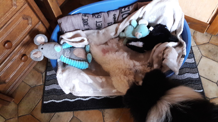 De nacht ging gemakkelijker dan gisteren. Hij is natuurlijk vroeg wakker en nog niet zindelijk 's nachts nee maar dat ga ik nu niet elke dag herhalen dat lijkt me heel normaal voor een puppy en al zeker voor zo'n klein ras. Hij doet zijn best.