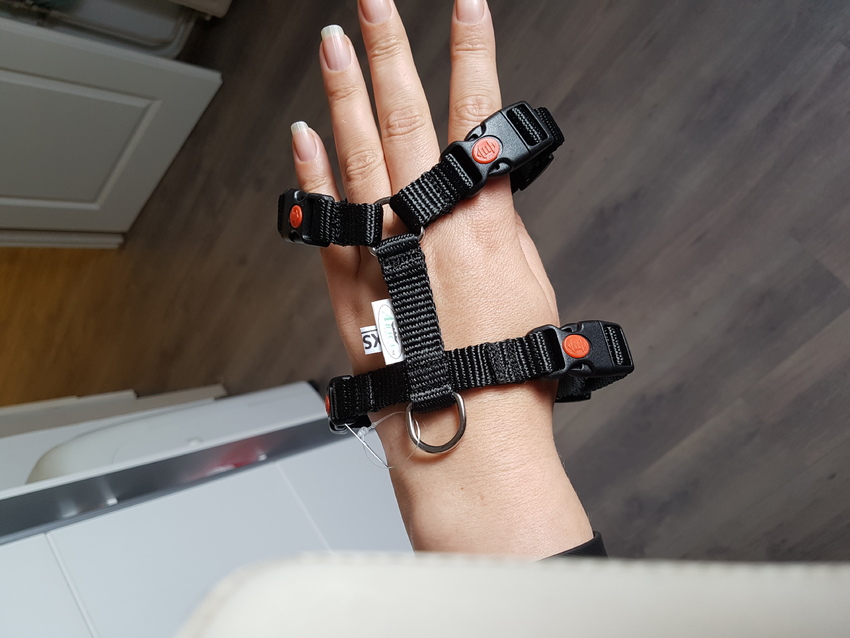 Die was heel fijn en niet duur want als pup zijn ze er in een paar weken uitgegroeid. Ik heb pas een goed tuig gekocht toen madam een maand of zeven, acht was.