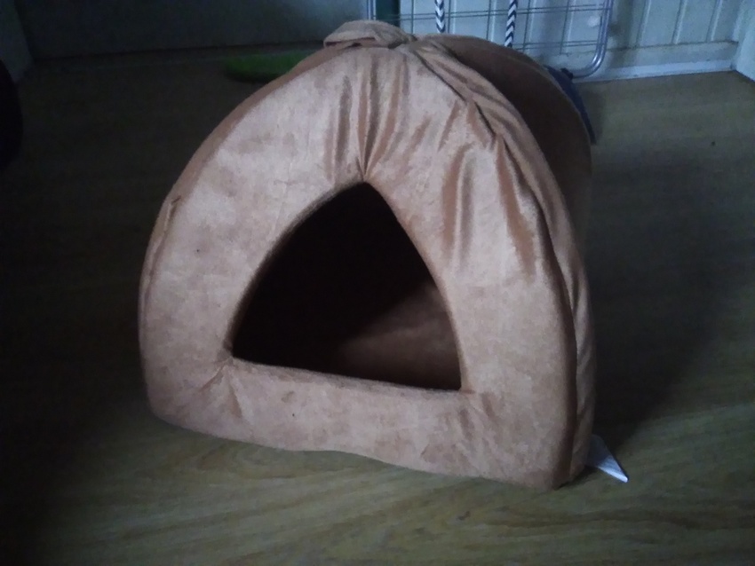 Voor het kleine hondje van mijn vriends moeder is een stoffen huisje gekocht wat ook een succes is.