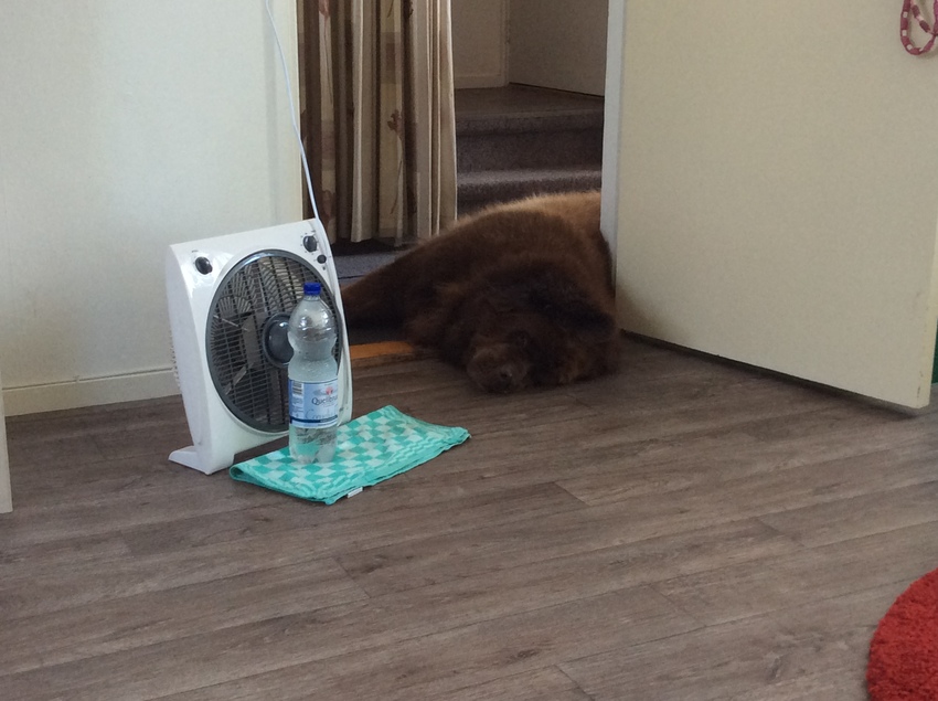 Niet geschikt voor newfoundlanders, wel een paar x per dag de waterblazer gebruiken, de vachten met coole lucht openblazen....