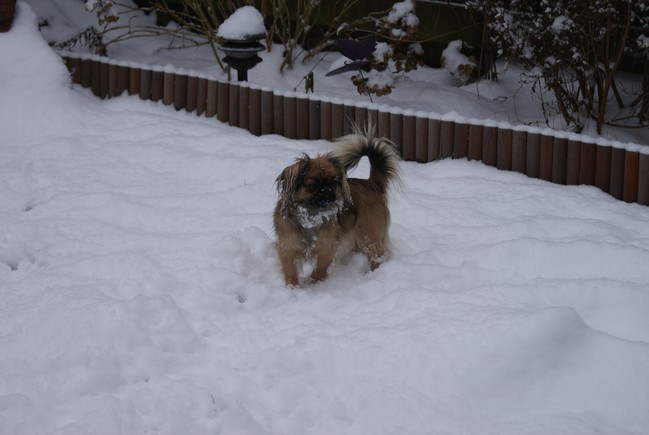 Wat ik gisteravond toch zag! Zoëy was in de tuin in de sneeuw aan het spelen en even laatste plasje doen. En ineens zie ik dat ze met haar neusje sneeuw naar voren rolt en schuift, de hele tuin door! Net zo lang tot ze een mooie ronde sneeuwbal heeft gerold en die gaat ze dan weer uit elkaar halen met haar waffeltje en pootjes! Daarna begint het hele ritueel weer en maakt ze al duwend met haar neusje weer een sneeuwbal!!