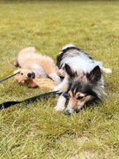 May kan daar prima los en loopt dus los, honden van vriendin ook. Sky niet die liep, gelukkig!, aan de lijn. May kijkt amper tot niet om naar andere honden. Ik wou sky net losdoen want daar had ze los gekund. Maaar zag een vrouw op het pad in een rolstoel staan die praatte met een man in het hoge gras ernaast. Sky kan niet met rolstoelen dus bleef ana de lijn. May liep er netjes langs. Toen viel me op dat die man een lijn vasthield. Prima dacht May netjes dat je t negeert. Kom ik dichterbij kan ik geen hond vinden. Sky was al korter ivm rolstoel. Ik focus me intens op die lijn zit er een...