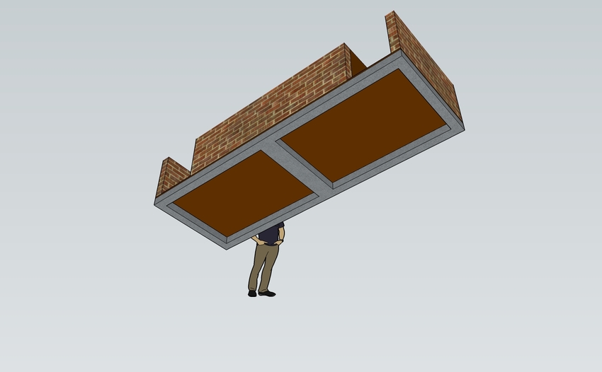 Het plaatje aan de onderkant laat zien dat ik een frame wil maken van beton. met daarop een 18mm multiplex plaat.